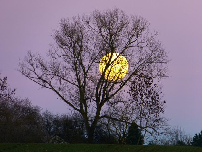 Keywords: moon full moon moonrise evening twilight moonlight tree skyline yellow atmosphere