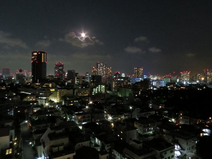 Keywords: moon full moon tokyo architecture skyline city cityscape tower skyscraper building landmark urban scenic scenery downtown metropolis buildings metropolitan