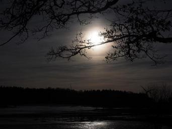 Keywords: moon moonlight full moon ghostly dark night fairytale sun solar disk tree road lake water mirroring walker meadows essingen pond lakes tauchenweiler swabian alb pond waters lauterbourg bartholomä bog lake huelbe