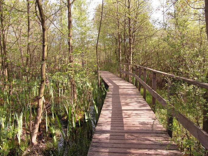 Keywords: moor bridge web light spring may away hiking recovery nature conservation nature moist reed forest birch hell