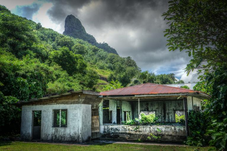 Keywords: moorea south pacific polynesia tropical vacation seascape abandoned building nature water landscape sky clouds outdoor mountain scenic travel
