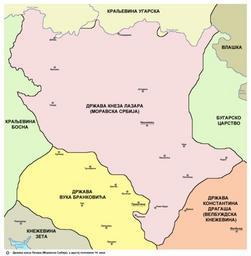 | Keywords: Moravian Serbia-sr.png en Realm of Prince Lazar Moravian Serbia in the second half of the 14th century sr Д жава кнеза Лаза а о авска С бија у д угој половини 14 века own PANONIAN 2014 Cc-zero References Istorijski atlas Geokarta Beograd 1999 Denis Šehić - Demir Šehić Istorijski atlas Sveta Beograd 2007 The Times History of Europe Times Books London 2002 Vladimir Ćorović Ilustrovana istorija Srba knjiga druga Beograd 2005 Srpski narod u drugoj polovini XIV i u prvoj polovini XV veka Zbornik radova Beograd 1989 Petrit Imami Srbi i Albanci kroz vekove Beograd 2000 Miloš Blagojević Srbija Nemanjića i Hilandar Beograd - Novi Sad 1998 http //i6 photobucket com/albums/y226/mindaugas/Srpstvo/srpskezemlje1373do1395 jpg http //www rgz gov rs/kart-proizvodi/artikli 5C055610 jpg Maps of the history of Serbia in the 14th century Maps of the history of Romania in the Middle Ages Lazar of Serbia Maps in Serbian |