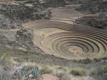 Keywords: outdoor The complex is located 46 miles from Cuzco City, at 11,482 feet above sea level. An outstanding archaeological site because it holds a series of circular Andean paths that were probably amphitheaters. The largest has 12 paths and has a depth of 328 feet. According to researchers, the circular paths in Moray served as a center for agricultural research, as each level offered different climactic conditions and allowed for different plants to be cultivated experimentally. The terraces were made by building containment walls filled with fertile earth. They were watered through a complex irrigation system. At the base of the terraces, there is a rain water storage system. The entire system allowed for the cultivation of over 250 types of vegetables. Other studies suggest that the site was used for astronomical observation and for monitoring climatic changes. This was done by following the sun light and shadows that appear on the area's high mountains. The complex is located 46 miles from Cuzco City, at 11,482 feet above sea level. An outstanding archaeological site because it holds a series of circular Andean paths that were probably amphitheaters. The largest has 12 paths and has a depth of 328 feet. According to researchers, the circular paths in Moray served as a center for agricultural research, as each level offered different climactic conditions and allowed for different plants to be cultivated experimentally. The terraces were made by building containment walls filled with fertile earth. They were watered through a complex irrigation system. At the base of the terraces, there is a rain water storage system. The entire system allowed for the cultivation of over 250 types of vegetables. Other studies suggest that the site was used for astronomical observation and for monitoring climatic changes. This was done by following the sun light and shadows that appear on the area's high mountains. |