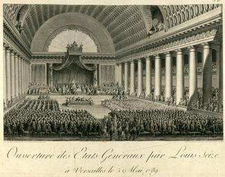 View Original: | Moreau le Jeune, Ouverture des états généraux par Louis XVI à Versailles le 5 mai 1789.png (1190x934) | |||