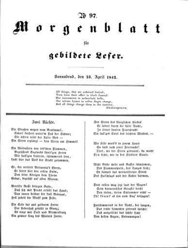 | Keywords: Morgenblatt fuer gebildete Leser 1842 385.jpg Morgenblatt_fuer_gebildete_Leser_1842_ jpg 384 386 Morgenblatt für gebildete Leser Stuttgart und Tübingen Cotta UB Darmstadt Signatur Zs 3042 1842 Annette von Droste-Hülshoff und andere Books by Annette von Droste-Hülshoff Morgenblatt für gebildete Stände PD-old |