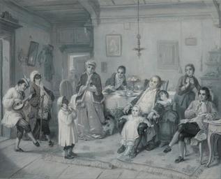 Keywords: Moritz Daniel Oppenheim - Purim (Feast of Esther) (Das Purim-Fest) - Google Art Project.jpg Gift of the Oscar and Regina Gruss Charitable and Educational Foundation Inc 1999-96 Oil on canvas the artist's family after 1866; sold to Hermann Cramer ; Hermann Cramer Frankfurt Germany until d 1919 ; his wife Hedwig Cramer Frankfurt Germany 1919-d 1934 ; her son Sally H Cramer Hamburg Germany later London England 1934-d 1952 ; his son Robert Cramer 1952 ; sale London England about 1952 Oscar Gruss New York NY until 1999 special url_id dgFpr-VoEaILSA PD-old-100-1923 1882 Moritz Daniel Oppenheim Google Art Project works by Moritz Daniel Oppenheim Jewish Museum New York City Purim |