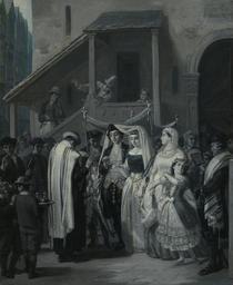Keywords: Moritz Daniel Oppenheim - The Wedding (Die Trauung) - Google Art Project.jpg Gift of the Oscar and Regina Gruss Charitable and Educational Foundation Inc 1999-87 Oil on canvas the artist's family after 1866; sold to Hermann Cramer ; Hermann Cramer Frankfurt Germany until d 1919 ; his wife Hedwig Cramer Frankfurt Germany 1919-d 1934 ; her son Sally H Cramer Hamburg Germany later London England 1934-d 1952 ; his son Robert Cramer 1952 ; sale London England about 1952 Oscar Gruss New York NY until 1999 special url_id HwF6uII5K3mrng PD-old-100-1923 1882 Google Art Project works by Moritz Daniel Oppenheim Jewish weddings |