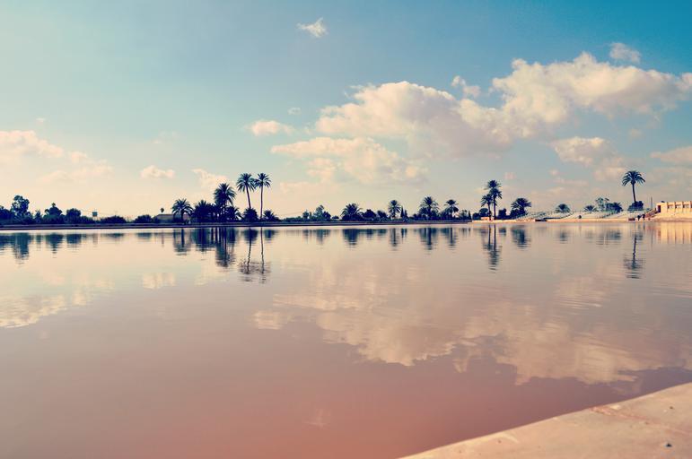 Keywords: morocco lakes water still calm reflections reflective surfaces palms trees flora blue sky nature scenic scenery outdoors natural landscapes africa