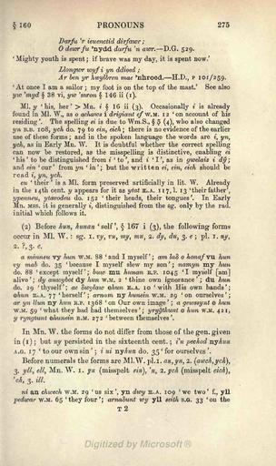 | Keywords: Morris-Jones Welsh Grammar 0275.png A scan of the book A Welsh Grammar Historical and Comparative by John Morris-Jones Morris-Jones_Welsh_Grammar_ png 0274 0276 http //www archive org/details/welshgrammarhist00joneuoft 1913 John Morris-Jones 1864 “1929 Author died more than 70 years ago - public domain PD-old Welsh Grammar by John Morris-Jones |