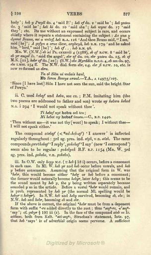 | Keywords: Morris-Jones Welsh Grammar 0377.png A scan of the book A Welsh Grammar Historical and Comparative by John Morris-Jones Morris-Jones_Welsh_Grammar_ png 0376 0378 http //www archive org/details/welshgrammarhist00joneuoft 1913 John Morris-Jones 1864 “1929 Author died more than 70 years ago - public domain PD-old Welsh Grammar by John Morris-Jones |