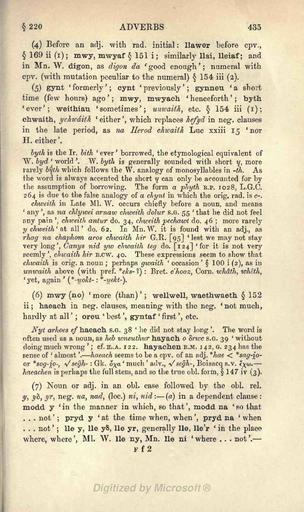 | Keywords: Morris-Jones Welsh Grammar 0435.png A scan of the book A Welsh Grammar Historical and Comparative by John Morris-Jones Morris-Jones_Welsh_Grammar_ png 0434 0436 http //www archive org/details/welshgrammarhist00joneuoft 1913 John Morris-Jones 1864 “1929 Author died more than 70 years ago - public domain PD-old Welsh Grammar by John Morris-Jones |