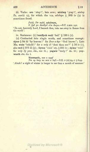 | Keywords: Morris-Jones Welsh Grammar 0452.png A scan of the book A Welsh Grammar Historical and Comparative by John Morris-Jones Morris-Jones_Welsh_Grammar_ png 0451 0453 http //www archive org/details/welshgrammarhist00joneuoft 1913 John Morris-Jones 1864 “1929 Author died more than 70 years ago - public domain PD-old Welsh Grammar by John Morris-Jones |