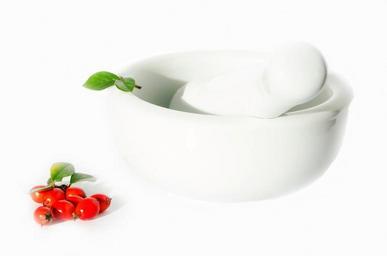 Keywords: mortar red berries cuisine seasoning cooking ingredient white ceramic decoration pharmaceuticals medicine fresh crushed herbalist natural food