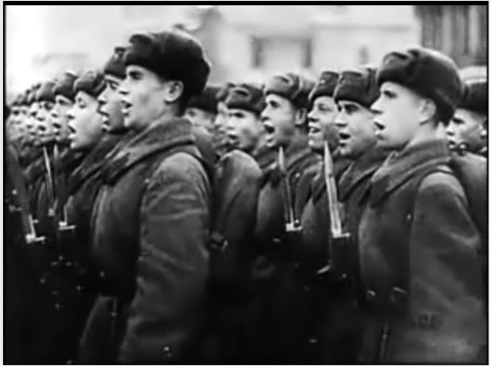 Keywords: Moscow Strikes Back 11-25 cheering Red Army parade, bayonets fixed.jpg en Still from Moscow Strikes Back Soviet documentary of the Battle of Moscow Directed by Ilya Kopalin 1 of 4 films to win the 1943 Academy Award for Best Documentary 1942 https //archive org/details/MoscowStrikesBack Ilya Kopalin director other versions cc-zero Ilya Kopalin Uploaded with UploadWizard Moscow Strikes Back |