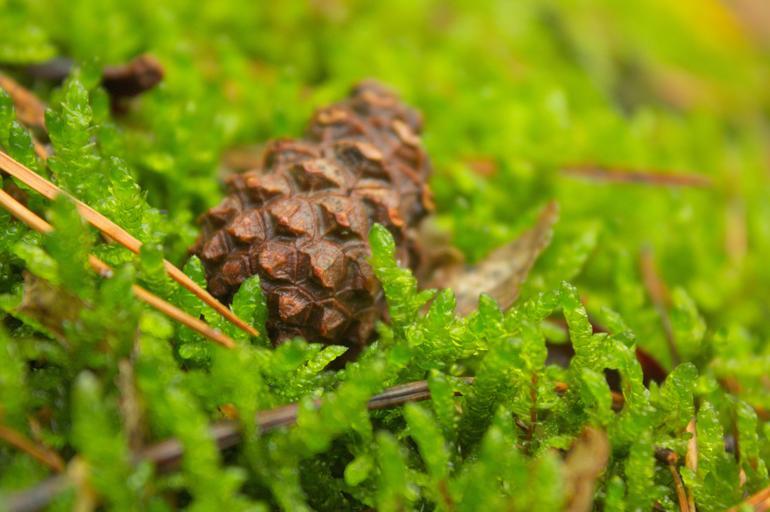 Keywords: moss green overgrown forest landscape forests closeup macro forest litter nature forest path pine cone seeds moisture spring plant leaflet