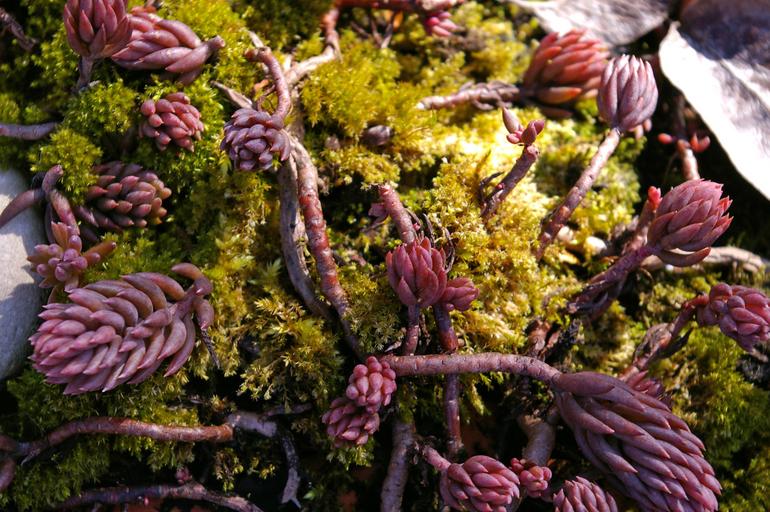 Keywords: moss stone bed stone bedding plant plant succulent plant pointy red thick sheet greenhouse bed water storage succulent flower bed garden spring nature flora filigree flowers