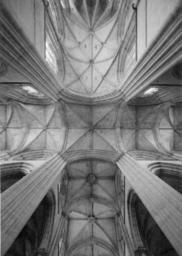 | Keywords: arquitectura gótico portugal batalha mosteiro santa vitória fundação calouste gulbenkian fundaçãocaloustegulbenkian maria pia mariapia commons:event=commonground2009 mário tavares chicó máriotavareschicó mário novais márionovais gótica biblioteca de arte bibliotecadearte Abóbada. Fotógrafo: Mário Novais, 1899-1967. Orientador científico: Mário Tavares Chicó, 1905-1966. Data aproximada da produção da fotografia original: 1954. O Mosteiro da Batalha é o mais importante símbolo da Dinastia de Avis. Ele foi construído por iniciativa de D. João I, na sequência de um voto à Virgem, caso vencesse a Batalha de Aljubarrota (1385). Ao longo do século XV, praticamente todos os monarcas aqui deixaram a sua marca. O arranque das obras deu-se em 1388 e foi conduzido por Afonso Domingues, que se manteve à frente do estaleiro até 1402, ano em que faleceu. A ele se atribui o plano geral da construção e o grande avanço dos trabalhos na igreja e no claustro. Não terá tido tempo de executar a fachada principal nem o abobadamento do templo, deixando igualmente inacabado o claustro. A magnífica igreja de três naves e transepto saliente por si delineada, com cabeceira de cinco capelas, sendo a central de duplo tramo e terminação poligonal, terá sido o ponto alto da sua carreira, mas revela bem o nível ainda algo arcaizante da arquitectura portuguesa de finais do século XIV, alheia aos progressos do Gótico Flamejante, que tanto iria marcar a segunda fase do monumento. Com efeito, a partir de 1402, a chefia do estaleiro foi entregue a Huguet, arquitecto de provável origem catalã que inaugurou, entre nós, o tardo-gótico. Documentado à frente do projecto até 1438, a ele se deve o abobadamento dos espaços da igreja e da Sala do Capítulo (onde experimentou, pela primeira vez, uma abóbada estrelada), a construção da Capela do Fundador e, ainda, o início das obras das Capelas Imperfeitas, bem como a conclusão da fachada principal, onde sobressai o portal axial. Este, é delimitado por um arco canopial que integra os escudos de D. João I e de D. Filipa. No tímpano, exibe-se Cristo em Majestade ladeado pelos Evangelistas e as arquivoltas são repletas de figurações que continuam pelas estátuas-colunas, ao abrigo de um complexo programa iconográfico. Mas a mais emblemática obra de Huguet é a Capela do Fundador. Ela foi concebida para panteão régio e sabemos que já se encontrava em obras em 1426. É um compartimento quadrangular que se adossa aos três tramos ocidentais da fachada lateral Sul e integra, ao centro, um esquema octogonal de suportes onde descarrega a abóbada estrelada, solução primeiro experimentada em Inglaterra, mas rapidamente difundida pela Europa. No circuito interior desta capela, colocou-se o túmulo duplo de D. João I e de D. Filipa, realização igualmente sem antecedentes no nosso país e que resulta de uma nítida influência da tumulária inglesa. Na capela repousam também os filhos do casal régio (como D. Henrique e o regente D. Pedro), de acordo com a decisão testamentária de D. João I em fazer deste espaço um efectivo panteão. Em 1436, D. Duarte decidiu edificar uma capela funerária para si próprio. O projecto então concebido por Huguet foi o mais arrojado da sua carreira na Batalha, privilegiando uma planta circular que, todavia, não viria a ser concluída pelo falecimento do mestre dois anos depois. Desta forma, e não obstante a intervenção de Mestre Martim Vasques, a construção cessou até ao reinado de D. Manuel e, mesmo nessa altura, não foi concluída, razão de esta parcela ser conhecida como as Capelas Imperfeitas. No reinado de D. Afonso V, edificou-se o segundo claustro do mosteiro. Ele resulta da intervenção do arquitecto Fernão de Évora e, estilisticamente, é uma obra que contraria o tardo-gótico de raiz flamejante, tendo-se optado deliberadamente pela austeridade arquitectónica, que rejeita até a inclusão de capitéis a marcar o arranque dos arcos. A Batalha teve outras fases construtivas igualmente relevantes, como o Manuelino ou o Renascimento. Todavia, a mudança dinástica verificada com D. Manuel privilegiou outros locais e, só no século XIX, o Mosteiro voltou a ser intervencionado, desta vez com o objectivo de restaurar o conjunto, campanha que se prolongou por meio século. (Fonte: IPPAR - tinyurl.com/5dmlfe) [CFT015.159.ic] Abóbada. Fotógrafo: Mário Novais, 1899-1967. Orientador científico: Mário Tavares Chicó, 1905-1966. Data aproximada da produção da fotografia original: 1954. O Mosteiro da Batalha é o mais importante símbolo da Dinastia de Avis. Ele foi construído por iniciativa de D. João I, na sequência de um voto à Virgem, caso vencesse a Batalha de Aljubarrota (1385). Ao longo do século XV, praticamente todos os monarcas aqui deixaram a sua marca. O arranque das obras deu-se em 1388 e foi conduzido por Afonso Domingues, que se manteve à frente do estaleiro até 1402, ano em que faleceu. A ele se atribui o plano geral da construção e o grande avanço dos trabalhos na igreja e no claustro. Não terá tido tempo de executar a fachada principal nem o abobadamento do templo, deixando igualmente inacabado o claustro. A magnífica igreja de três naves e transepto saliente por si delineada, com cabeceira de cinco capelas, sendo a central de duplo tramo e terminação poligonal, terá sido o ponto alto da sua carreira, mas revela bem o nível ainda algo arcaizante da arquitectura portuguesa de finais do século XIV, alheia aos progressos do Gótico Flamejante, que tanto iria marcar a segunda fase do monumento. Com efeito, a partir de 1402, a chefia do estaleiro foi entregue a Huguet, arquitecto de provável origem catalã que inaugurou, entre nós, o tardo-gótico. Documentado à frente do projecto até 1438, a ele se deve o abobadamento dos espaços da igreja e da Sala do Capítulo (onde experimentou, pela primeira vez, uma abóbada estrelada), a