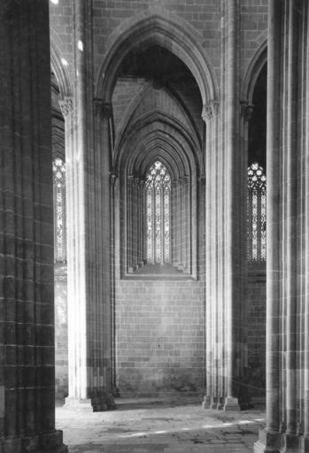 Keywords: arquitectura gótico portugal batalha mosteiro santa vitória fundação calouste gulbenkian fundaçãocaloustegulbenkian maria pia mariapia mário tavares chicó máriotavareschicó mário novais márionovais gótica biblioteca de arte bibliotecadearte Interior da Igreja. Fotógrafo: Mário Novais, 1899-1967. Orientador científico: Mário Tavares Chicó, 1905-1966. Data aproximada da produção da fotografia original: 1954. O Mosteiro da Batalha é o mais importante símbolo da Dinastia de Avis. Ele foi construído por iniciativa de D. João I, na sequência de um voto à Virgem, caso vencesse a Batalha de Aljubarrota (1385). Ao longo do século XV, praticamente todos os monarcas aqui deixaram a sua marca. O arranque das obras deu-se em 1388 e foi conduzido por Afonso Domingues, que se manteve à frente do estaleiro até 1402, ano em que faleceu. A ele se atribui o plano geral da construção e o grande avanço dos trabalhos na igreja e no claustro. Não terá tido tempo de executar a fachada principal nem o abobadamento do templo, deixando igualmente inacabado o claustro. A magnífica igreja de três naves e transepto saliente por si delineada, com cabeceira de cinco capelas, sendo a central de duplo tramo e terminação poligonal, terá sido o ponto alto da sua carreira, mas revela bem o nível ainda algo arcaizante da arquitectura portuguesa de finais do século XIV, alheia aos progressos do Gótico Flamejante, que tanto iria marcar a segunda fase do monumento. Com efeito, a partir de 1402, a chefia do estaleiro foi entregue a Huguet, arquitecto de provável origem catalã que inaugurou, entre nós, o tardo-gótico. Documentado à frente do projecto até 1438, a ele se deve o abobadamento dos espaços da igreja e da Sala do Capítulo (onde experimentou, pela primeira vez, uma abóbada estrelada), a construção da Capela do Fundador e, ainda, o início das obras das Capelas Imperfeitas, bem como a conclusão da fachada principal, onde sobressai o portal axial. Este, é delimitado por um arco canopial que integra os escudos de D. João I e de D. Filipa. No tímpano, exibe-se Cristo em Majestade ladeado pelos Evangelistas e as arquivoltas são repletas de figurações que continuam pelas estátuas-colunas, ao abrigo de um complexo programa iconográfico. Mas a mais emblemática obra de Huguet é a Capela do Fundador. Ela foi concebida para panteão régio e sabemos que já se encontrava em obras em 1426. É um compartimento quadrangular que se adossa aos três tramos ocidentais da fachada lateral Sul e integra, ao centro, um esquema octogonal de suportes onde descarrega a abóbada estrelada, solução primeiro experimentada em Inglaterra, mas rapidamente difundida pela Europa. No circuito interior desta capela, colocou-se o túmulo duplo de D. João I e de D. Filipa, realização igualmente sem antecedentes no nosso país e que resulta de uma nítida influência da tumulária inglesa. Na capela repousam também os filhos do casal régio (como D. Henrique e o regente D. Pedro), de acordo com a decisão testamentária de D. João I em fazer deste espaço um efectivo panteão. Em 1436, D. Duarte decidiu edificar uma capela funerária para si próprio. O projecto então concebido por Huguet foi o mais arrojado da sua carreira na Batalha, privilegiando uma planta circular que, todavia, não viria a ser concluída pelo falecimento do mestre dois anos depois. Desta forma, e não obstante a intervenção de Mestre Martim Vasques, a construção cessou até ao reinado de D. Manuel e, mesmo nessa altura, não foi concluída, razão de esta parcela ser conhecida como as Capelas Imperfeitas. No reinado de D. Afonso V, edificou-se o segundo claustro do mosteiro. Ele resulta da intervenção do arquitecto Fernão de Évora e, estilisticamente, é uma obra que contraria o tardo-gótico de raiz flamejante, tendo-se optado deliberadamente pela austeridade arquitectónica, que rejeita até a inclusão de capitéis a marcar o arranque dos arcos. A Batalha teve outras fases construtivas igualmente relevantes, como o Manuelino ou o Renascimento. Todavia, a mudança dinástica verificada com D. Manuel privilegiou outros locais e, só no século XIX, o Mosteiro voltou a ser intervencionado, desta vez com o objectivo de restaurar o conjunto, campanha que se prolongou por meio século. (Fonte: IPPAR - tinyurl.com/5dmlfe) [CFT015.162.ic] Interior da Igreja. Fotógrafo: Mário Novais, 1899-1967. Orientador científico: Mário Tavares Chicó, 1905-1966. Data aproximada da produção da fotografia original: 1954. O Mosteiro da Batalha é o mais importante símbolo da Dinastia de Avis. Ele foi construído por iniciativa de D. João I, na sequência de um voto à Virgem, caso vencesse a Batalha de Aljubarrota (1385). Ao longo do século XV, praticamente todos os monarcas aqui deixaram a sua marca. O arranque das obras deu-se em 1388 e foi conduzido por Afonso Domingues, que se manteve à frente do estaleiro até 1402, ano em que faleceu. A ele se atribui o plano geral da construção e o grande avanço dos trabalhos na igreja e no claustro. Não terá tido tempo de executar a fachada principal nem o abobadamento do templo, deixando igualmente inacabado o claustro. A magnífica igreja de três naves e transepto saliente por si delineada, com cabeceira de cinco capelas, sendo a central de duplo tramo e terminação poligonal, terá sido o ponto alto da sua carreira, mas revela bem o nível ainda algo arcaizante da arquitectura portuguesa de finais do século XIV, alheia aos progressos do Gótico Flamejante, que tanto iria marcar a segunda fase do monumento. Com efeito, a partir de 1402, a chefia do estaleiro foi entregue a Huguet, arquitecto de provável origem catalã que inaugurou, entre nós, o tardo-gótico. Documentado à frente do projecto até 1438, a ele se deve o abobadamento dos espaços da igreja e da Sala do Capítulo (onde experimentou, pela primeira vez, uma abóbada estrelada), a construção