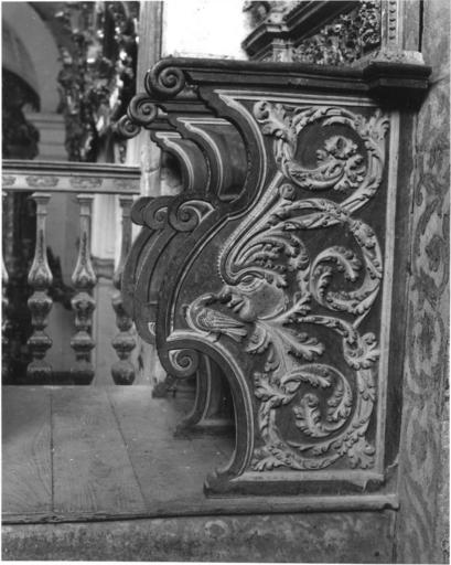 | Keywords: talha portugal mosteiro são martinho tibães robert smith fundação calouste gulbenkian fundaçãocaloustegulbenkian braga biblioteca de arte bibliotecadearte Cadeiral do Coro: bancos. Talha dos séculos 17-18. Fotógrafo: Robert Chester Smith (1912-1975). Data de produção da fotografia original: 1962-1964. [CFT008.0272.ic] Cadeiral do Coro: bancos. Talha dos séculos 17-18. Fotógrafo: Robert Chester Smith (1912-1975). Data de produção da fotografia original: 1962-1964. [CFT008.0272.ic] | ||||