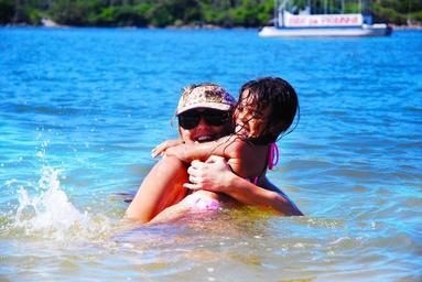 Keywords: mother and daughter swimming beach sol nature vessel catamaran water