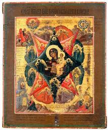 | Keywords: Mother of God, Burning bush.jpg en Mother of God Burning bush Tempera on woodpanel Russia mid 19th century 23 5x19 cm ru ICON ИКО А БОГО АТЕРЬ ЕОПАЛИ АЯ КУПИ А Россия Темпе а де ево Се едина 19в Разме ы 23 5х19 см s 1850 https //www bukowskis com/en/auctions/F171/224-icon Bukowskis author other versions PD-Art Uploaded with UploadWizard Marian icons in Russia Multiple-images marian icons | ||||