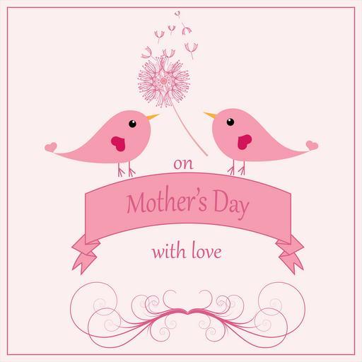 Keywords: mother's day card mother's day card dandelions birds cute whimsy pink flora decorative scrapbooking illustration