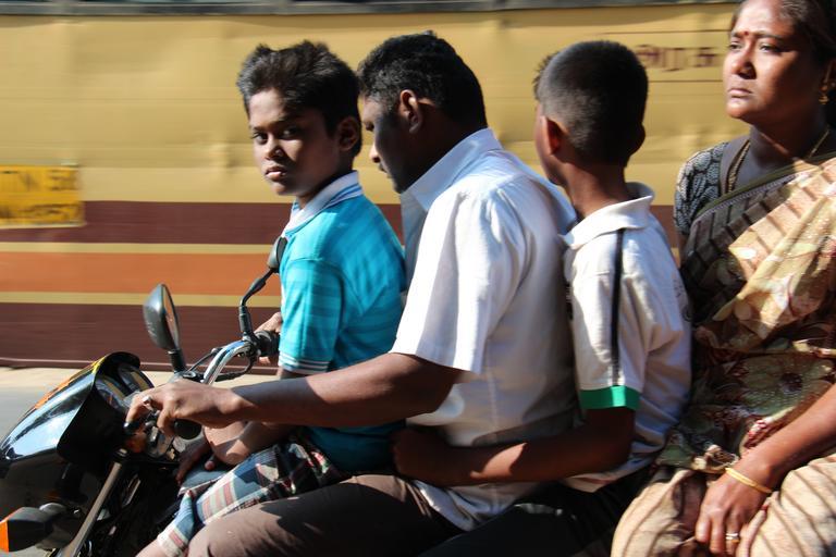 Keywords: motorcycle drive man woman family children road transport everyday life india