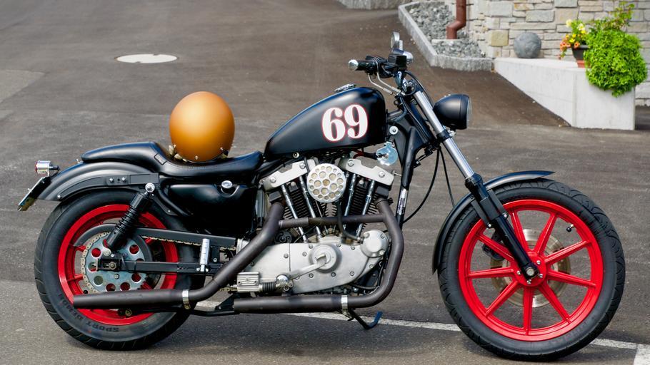Keywords: motorcycle eigenbau conversion two cylinders red wheels