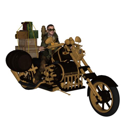 Keywords: motorcycle man luggage biker motorcyclist drive angle two wheeled vehicle men sit sporty motor human apocalyptic action