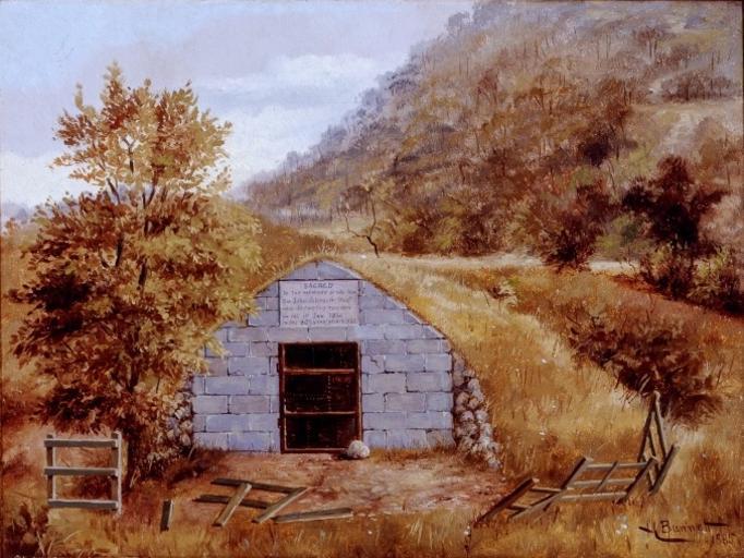 | Keywords: Mount Johnson, Vault Sir John Johnson.jpg en Painting Mount Johnson Vault Sir John Johnson Henry Richard S Bunnett 1885 Oil on canvas 22 5 x 30 1 cm http //www uelac org/SirJohnJohnson/burial-vault-discoveries php Sir John Johnson Burial Vault Archaeological Discoveries fr Peinture Mont Johnson caveau de Sir John Johnson Henry Richard S Bunnett 1885 Huile sur toile 22 5 x 30 1 cm<vr> « L ™emplacement présumé du caveau funéraire de la famille de sir John Johnson est au pied et sur le versant sud-est du mont Saint-Grégoire à Saint-Grégoire » - http //www genealogie org/club/shhr/arch/archeologie htm genealogie org 1885 M381 Henry Richard S Bunnett other versions PD-old-70-1923 Uploaded with UploadWizard Vaults Mont-Saint-Grégoire Sir John Johnson 2nd Baronet Henry Richard S Bunnett 1885 in Quebec |