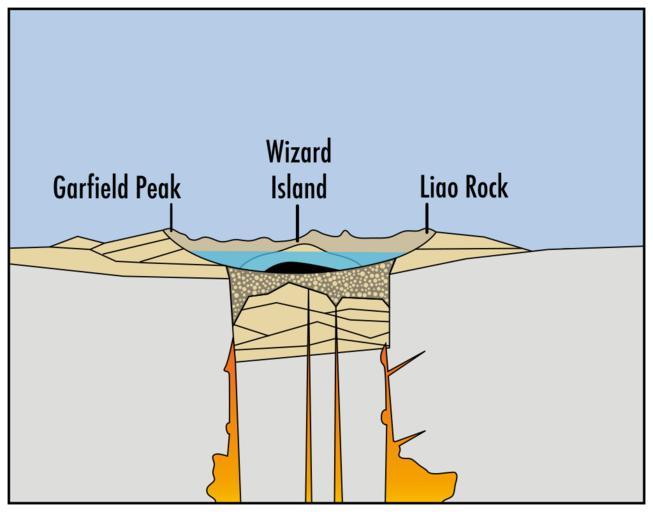Keywords: Mount Mazama eruption timeline 4.svg Eruptions of ash and pumice The cataclysmic eruption started from a vent on the northeast side of the volcano as a towering column of ash with pyroclastic flows spreading to the northeast Caldera collapse As more magma was erupted cracks opened up around the summit which began to collapse Fountains of pumice and ash surrounded the collapsing summit and pyroclastic flows raced down all sides of the volcano Steam explosions When the dust had settled the new caldera was 5 miles 8 km in diameter and 1 mile 1 6 km deep Ground water interacted with hot deposits causing explosions of steam and ash </span> Today In the first few hundred years after the cataclysmic eruption renewed eruptions built Wizard Island Merriam Cone and the central platform Water filled the new caldera to form the deepest lake in the United States Figure modified from diagrams on back of 1988 USGS map Crater Lake National Park and Vicinity Oregon http //pubs usgs gov/fs/2002/fs092-02/ U S GEOLOGICAL SURVEY and the NATIONAL PARK SERVICE Nachgebaut von Benedikt Seidl 06-08-2008 Image Mount_Mazama_eruption_timeline PNG SVG Benedikt Seidl Mount_Mazama_eruption_timeline PNG Mount Mazama diagrams Volcanological diagrams Diagrams of calderas |