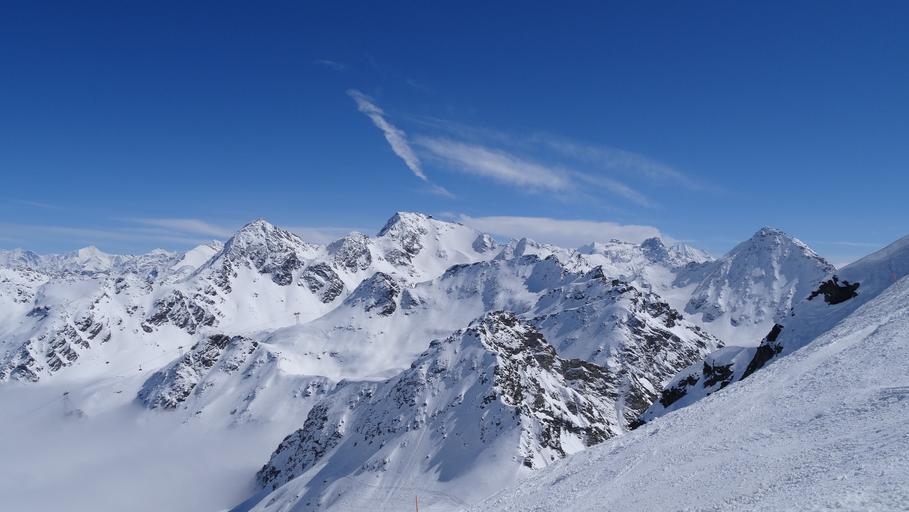 Keywords: mountain alps landscape nature summit hautes alpes winter ski sky blue snow altitude winter landscape high mountain view snowy