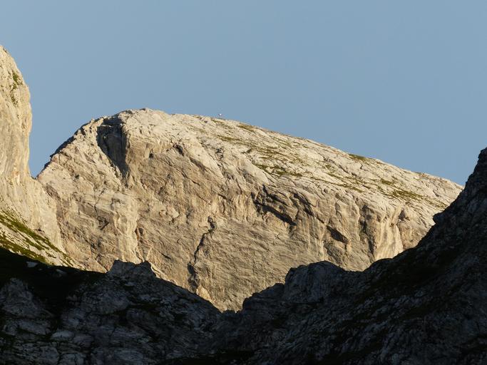 Keywords: mountain cima della saline saline sunny evening sun illuminated mountain summit summit cross summit alpine maritime alps alpenglühen rocky hill rock rocky mountain steep wall climbing wall climbing rock steinig mountainous high mountains