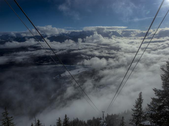 Keywords: mountain clouds landscape fog sky forest blue alpine mountains cable car nature hike sea of fog mood panorama mountain landscape hiking tour hdr get away mountain hike recovery way of life hiking adventure high rope freedom