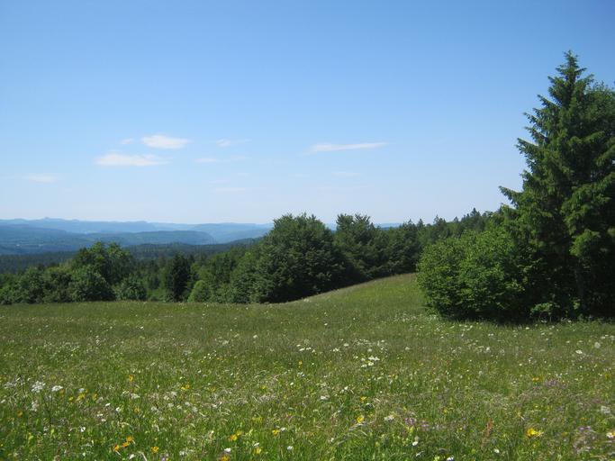 Keywords: mountain meadow meadow summer meadow summer flowers mountain flowers sky blue wide hay grass