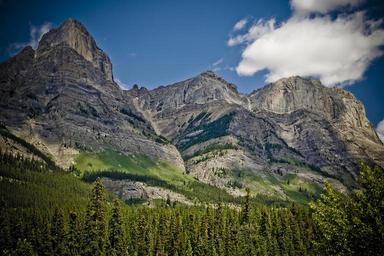 Keywords: mountain peak landscape sky top rock high mountain top range stone summer summit trees outdoor nature blue clouds picturesque green canada canadian