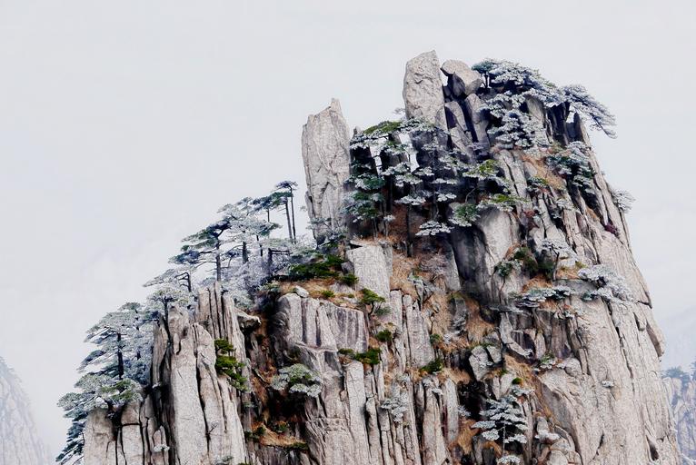 Keywords: mountain rock landscape peak summit mountain top cliff jagged sharp cold snow trees nature