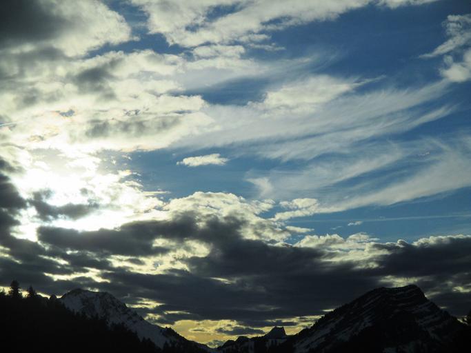 Keywords: mountains alpine switzerland sunset abendstimmung natural spectacle clouds sky weather twilight