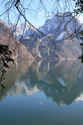 Keywords: mountains austria mountain top nature trees landscape blue steep blue sky view mountain mountain lake mirror