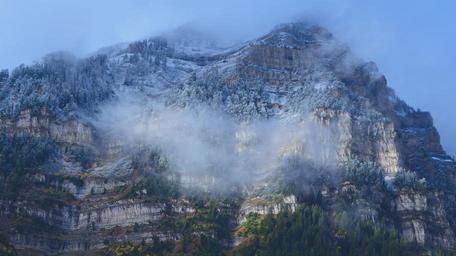 Keywords: mountains fog snow cloud light dark landscape outdoor nature foggy mist natural scenic adventure