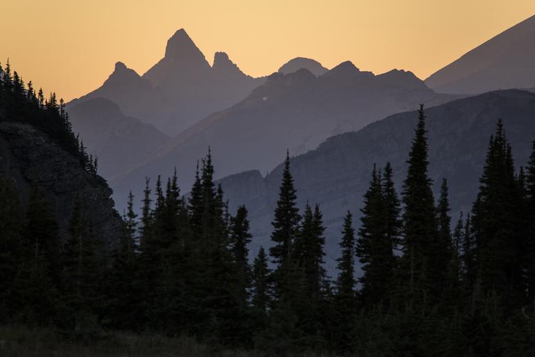 Keywords: mountains silhouettes sunset dusk twilight evening skyline horizon trees landscape scenic nature outdoors view stony indian peaks glacier national park montana usa