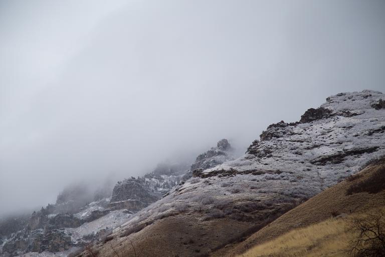 Keywords: mountains snow season autumn winter rocks highlands alpine landscape fog mist outdoors