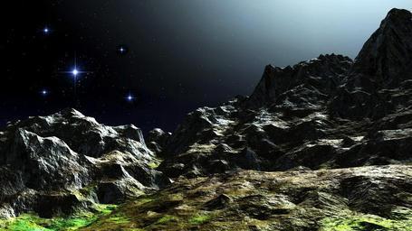 Keywords: mountains stars night rock walls digital artwork computer graphic fantasy