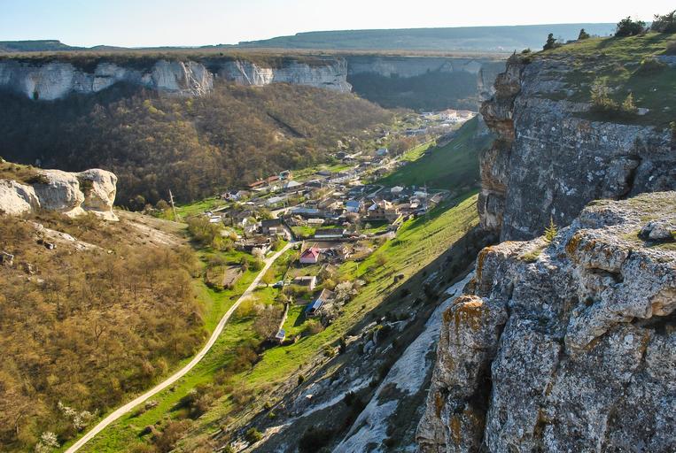 Keywords: mountains village landscape cottage rocks canyon countryside