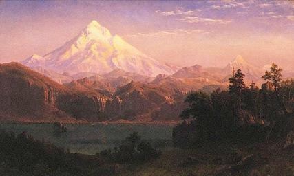 | Keywords: MountHoodBierstadt.jpg Mount Hood 1869 oil on canvas cm 153 92 Belluschi Building Hirsch Wing 2nd Floor Millis Galleries Silver American Portland Art Museum http //pamcollections org/detail php t objects type all f s Bierstadt record 0 The Portland Art Museum object history credit line Gift of Henry Failing Cabell accession number 53 21 http //www pam org/asp/templates/collection_object_page asp collectionID 14 imageID 66 Portland Art Museum creator Albert Bierstadt Other versions http //pamcollections org/browser php m objects kv 11260 i 43330 PD-old-100-1923 DEFAULTSORT Albert Bierstadt - Mount Hood Landscape paintings of the United States by Albert Bierstadt Paintings in the Portland Art Museum Mount Hood in art 19th-century mountain paintings 1869 paintings in the United States Oil paintings of landscapes 1860s landscape paintings |
