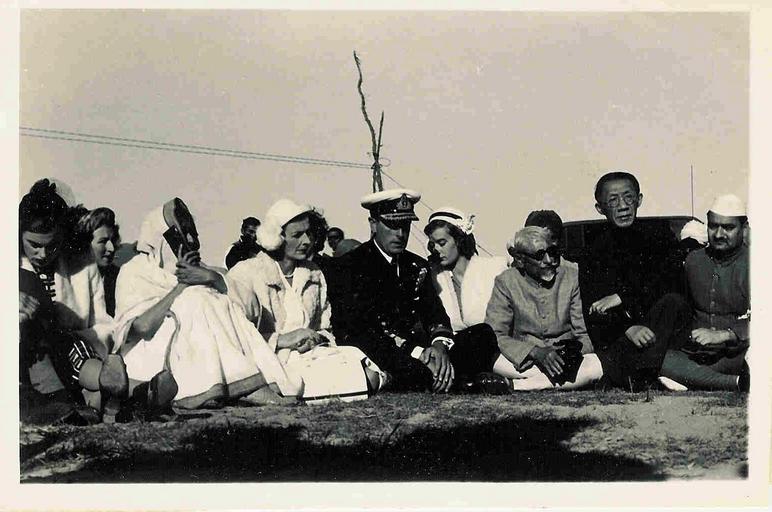 Keywords: photo border "The End of the journey: Rajkumari Amrit Kaur, Lady Mountbatten, Lord Louis Mountbatten, Pamela Mountbatten, and Maulana Azad watch the flames of the funeral pyre consuming the mortal remains of Gandhiji on the bank of Jamuna on January 31, 1948." Source: UH Manoa Library "The End of the journey: Rajkumari Amrit Kaur, Lady Mountbatten, Lord Louis Mountbatten, Pamela Mountbatten, and Maulana Azad watch the flames of the funeral pyre consuming the mortal remains of Gandhiji on the bank of Jamuna on January 31, 1948." Source: UH Manoa Library |