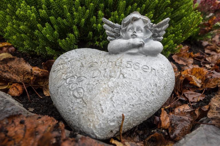 Keywords: mourning angel love heart farewell condolences cemetery statue angel figure memorial death hope sculpture stone prayer transience face silent symbol harmony memory loss grave grabschmuck deco decorative items reflection viewing
