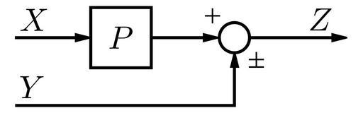 Keywords: Moving Summing Junction in front of Block 1.svg control theory sense showing a combination of summing junctions implementing <math>Z PX \pm Y</math> Own Inductiveload 2009-03-10 Control theory