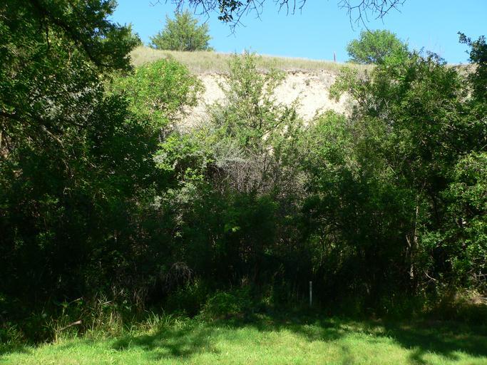 Keywords: Mowry Bluff site from E 1.JPG en View of the Mowry Bluff archaeological site in Frontier County Nebraska Camera is on the floodplain of Medicine Creek facing generally westward; a weir with a stream-gaging station is in the creek behind the photographer A very small creek runs at the base of the dirt cliff in the photo 2013-08-10 10 25 00 own Ammodramus cc-zero Pictures by Ammodramus Mowry Bluff archaeological site Frontier County Nebraska Uploaded with UploadWizard |