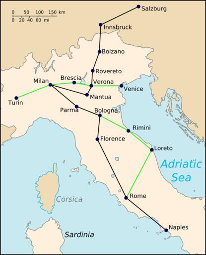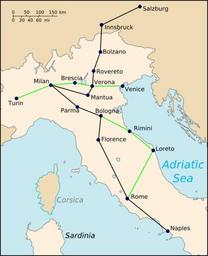 | Keywords: Mozart in Italy.svg  en Map showing main centres visited during first Italian journey December 1769 to March 1771 The black line shows the main outward route from Salzburg to Naples The green line marks detours taken during the return journey Base File Map of Italy-it svg by User F l a n k e r Data File MozartItalyMap2 jpg by User Brianboulton based on journey account in cite book Sadie Stanley 2006 Mozart The Early Years 1756-1781 W W Norton Co 0-393-06122-4 Self-made by Jappalang 2009-01-17 Mozart in Italy de svg Mozart in Italy sr svg File MozartItalyMap2 jpg SVG maps of Italy Wolfgang Amadeus Mozart |